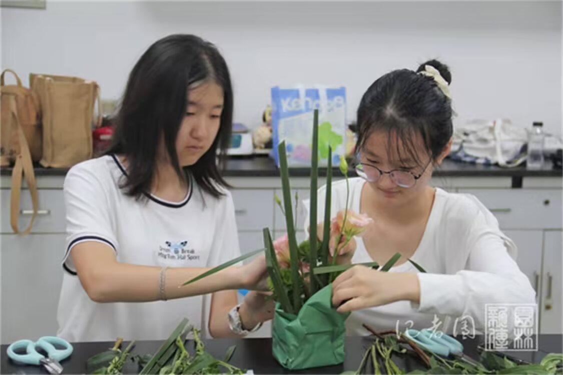 8月31日上午,花艺活动于园林北楼222室顺利举办。公司教师王媛媛、张蔚向同学们介绍并区别了东西方分别的花艺特征并且拓展了花艺在生活中的运用场景。王媛媛给大家介绍了今天制作桌花所需的花艺材料,并从专业的角度向同学们介绍了插花技巧与操作方式。此次体验以水烛叶作为主要的架构材料、洋桔梗作为主花,需分组错落入盆,呈三角结构,才会使作品空间感最佳。体验环节,同学们以寝室为单位,积极参与花艺创作。大家还在模范示例的基础上进行了额外的自由创作,创造出了各式各样的桌花小作品。