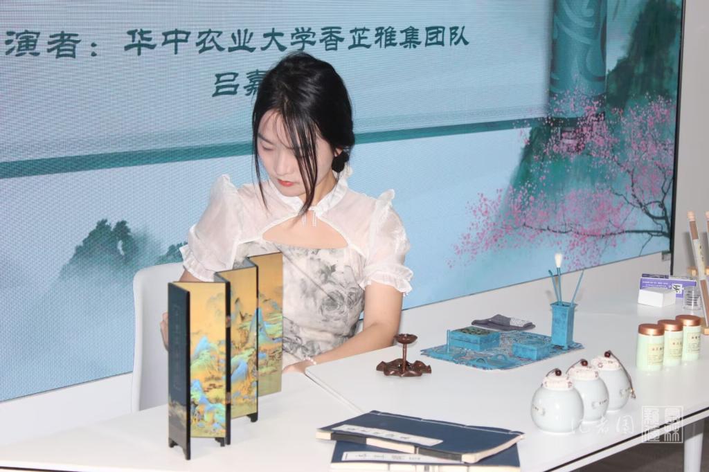 由茶文化协会主办的“耕读第一课”学科文化体验活动在园林北楼耕读茶室顺利举行。活动伊始,茶学2201班孙晓慧、黄文宇带来红茶茶艺表演。洁具、展茶、倒水、出汤......优雅温婉,一气呵成。当红茶的香气在空气中氤氲,传递的是青春的自由与奔放,动人的是年少的热忱与赤诚。雅俗共赏,寻味香茗。透过茶学2301班饶璐、游仕鑫的讲解与示范,同学们看到了宋人典雅简约、礼制有序的点茶之姿。注水声、古琴声入耳,茶香满屋此次次学科体验活动,为新生们带来了一场视觉与味觉的盛宴,让同学们近距离感受到了茶文化的魅力。