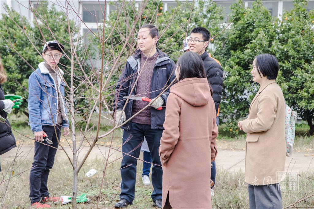 (文/江广贤图/魏俊康)【核心提示】为提高员工的果树冬季整形修剪能力,12月20下午,张青林副教授带领16级园艺果树方向的48名本科生前往果树标本园,进行果树冬季整形修剪实践教学。此次课程为校第20期“实践教学示范课”,吸引了10余名教师前来标本园观摩学习。