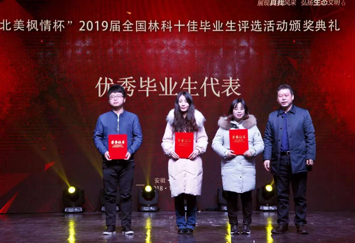 【核心提示】12月27日下午两点半,以“展现真我风采,弘扬生态文明”为主题的“北美枫情杯”2019届全国林科十佳毕业生颁奖典礼在安徽农业大学大礼堂举行,伟德bv1946官网辅导员李永煕老师带领公司获奖员工——园林1503班袁月赴现场参与活动。