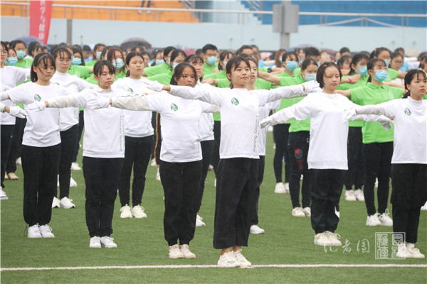 伴着熟悉的韵律,公司广播操队伍开始表演。他们身着白色服装,目光坚定,动作整齐划一。抬手、踢腿,举手投足充满朝气;弯腰、屈膝,一举一动尽显青春风采。据悉,为了达到比赛的标准,他们在公司组织部和女生部的带领下进行了十余天的训练。