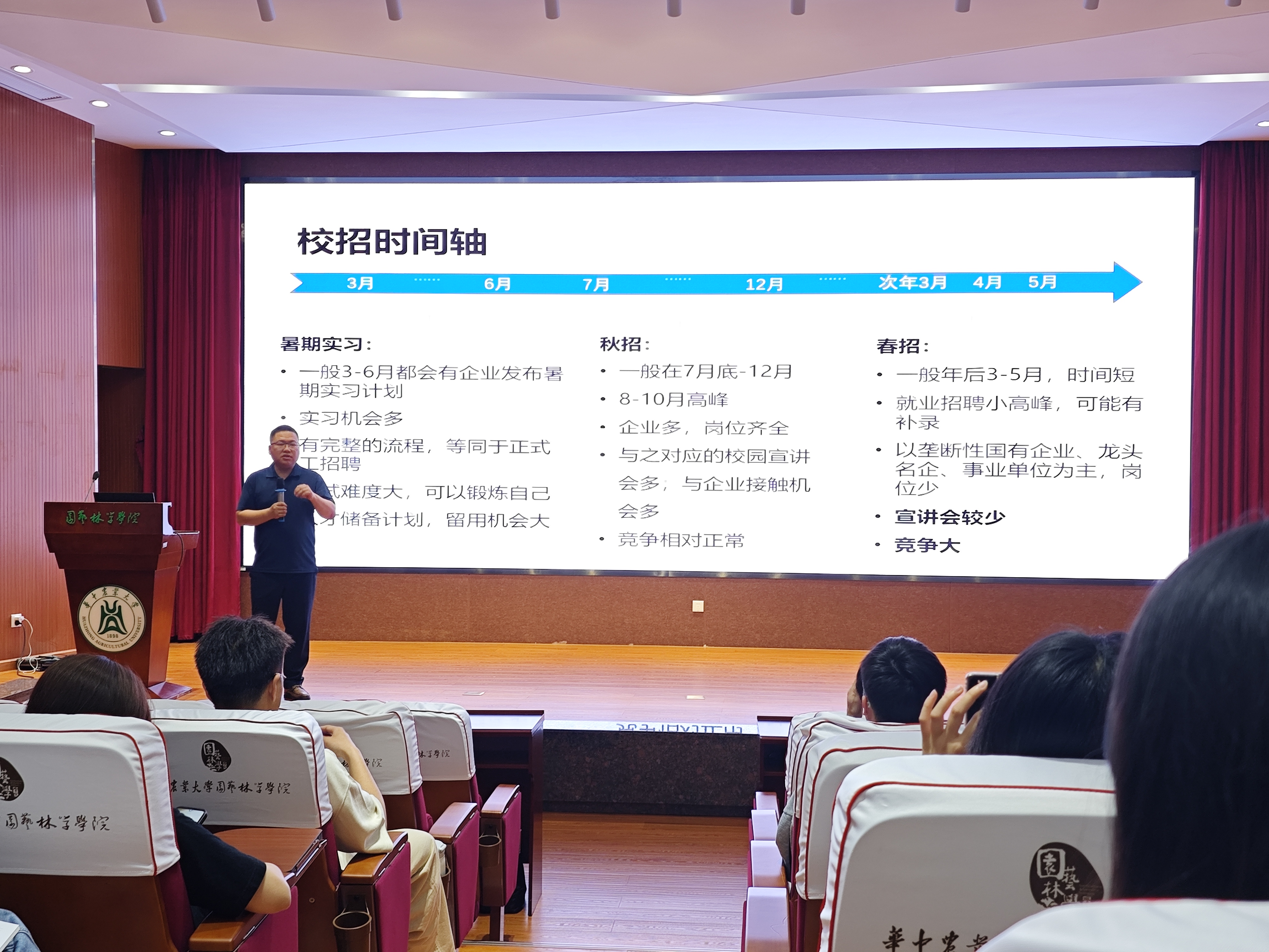 贺老师还强调了实习的重要性。他表示,实习是找工作的重要法宝,可以让毕业生积累工作经验,了解行业动态,提升个人能力。他建议大家在实习中积极表现,争取留用机会。此外,贺老师还讲解了如何平衡科研和实习,提出了一些实用的建议。