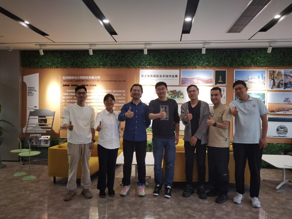 在杭州园林院设计股份有限公司,风景园林二院经理、公司风景园林系员工顾力天等热情与母校老师进行了座谈交流。顾力天等结合风景园林学科理论与实践的特点,为团队建设和人才培养提供了详细的建议,尤其在学科核心课程设置、专业实习、专业能力培养、整体性思维培养等方面提出了针对性建议。林辉代表公司学科向在设计院的顾力天、胡玲等员工代表以及在院全体员工表达母校的问候。他强调,员工是公司公司发展的重要支撑力量,要持续打造“员工价值共同体”,为学科发展和员工成长发展双向赋能。