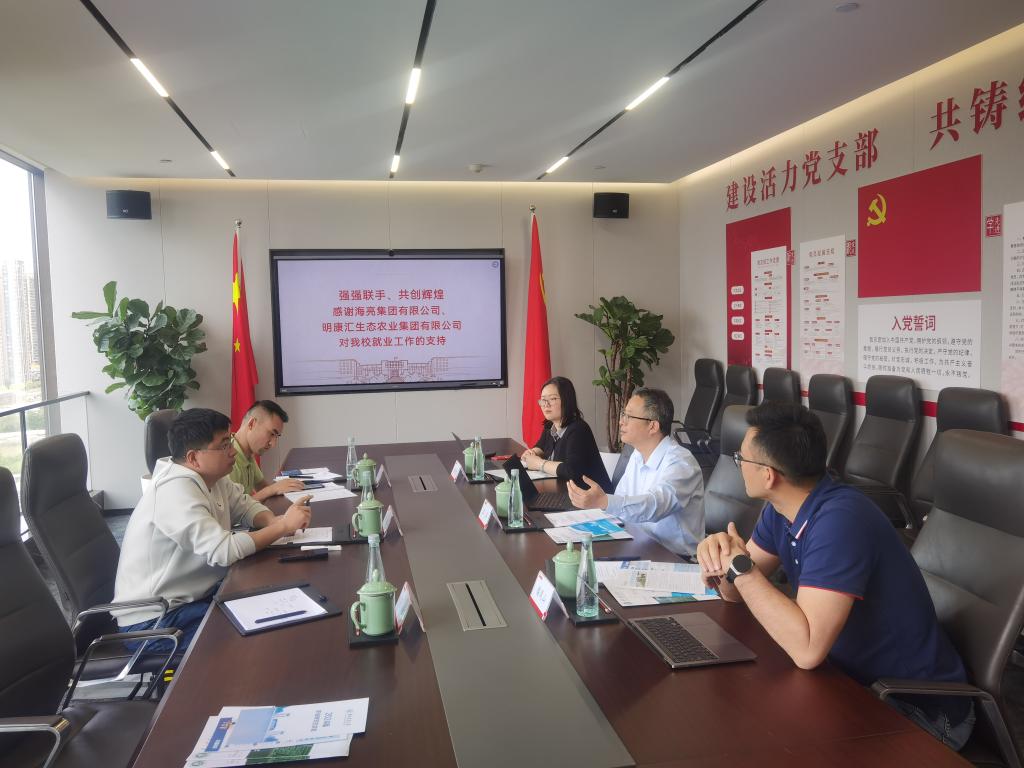 在明康汇生态农业集团有限公司,海亮集团明德院经理助理汪洋、明康汇生态农业集团副总裁潘凤山等热情接待了林辉一行,汪洋详尽地阐述了公司的发展历程,深入剖析了技术研发的进展,以及当前所面临的机遇与挑战。特别是在农业全产业链布局方面,他分享了公司的思考与具体实践。明康汇始终坚持“让每个人享受生鲜的美好”的使命,努力打造中国最大的高性价比生鲜供应链企业。潘凤山肯定了bv伟德国际1946在员工人才培养方面所具有的独特优势,员工专业基础扎实、学习能力强,希望公司能够继续选送优秀毕业生到公司就业,在园艺品种培育、采后保鲜等方面给予技术支持。