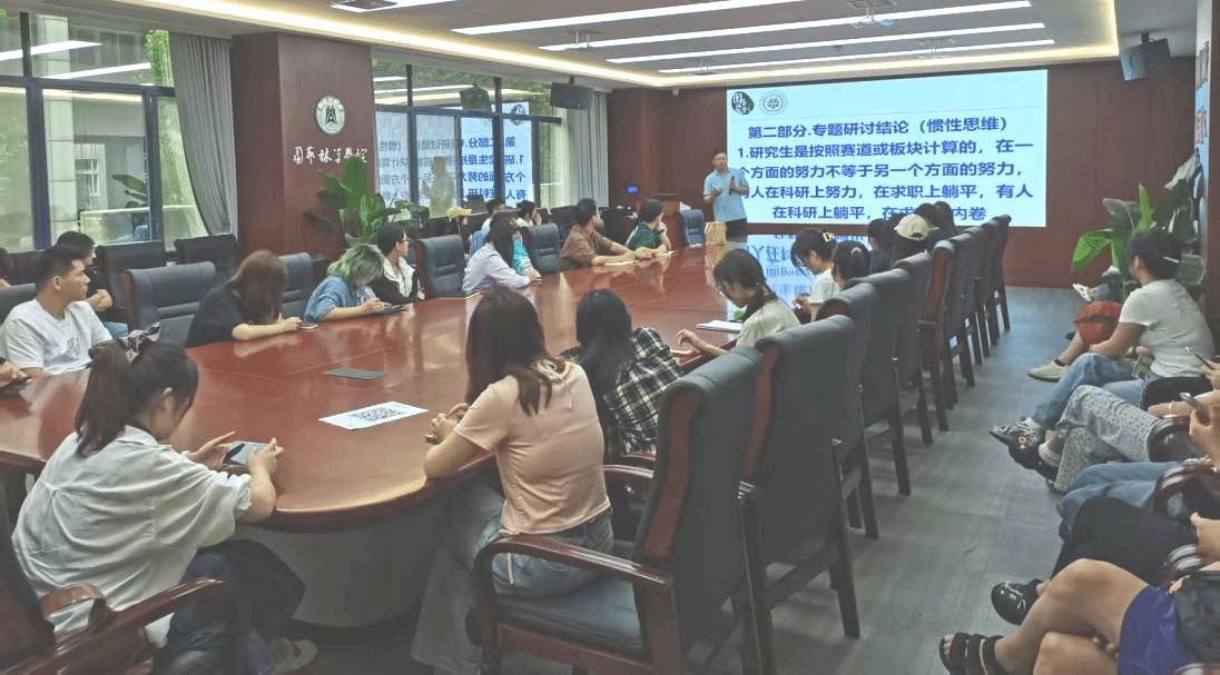 在专题研讨环节,辅导员肖晗以公司员工与武汉大学员工求职状况对比为切入点,深入剖析了公司研究生群体在科研与求职中的惯性思维误区,强调“早规划、早行动”的重要性,并结合案例鼓励同学们根据自身情况合理选择求职或升学路径。