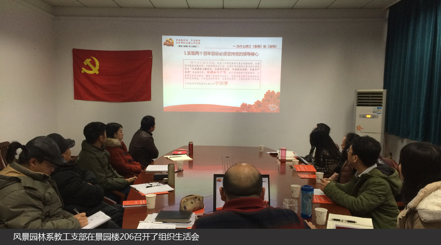 12月24日下午,公司风景园林系教工支部在景园楼206召开了组织生活会。支部联系人、校后勤集团党委书记、总经理张金洲、公司党委书记张宏荣、风景园林系教工党支部13位党员参加了会议。组织生活会由支部书记、副经理张斌主持。