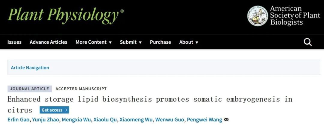 近日,伟德bv1946官网、果蔬园艺作物种质创新与利用全国重点实验室王鹏蔚教授团队在Plant Physiology期刊发表题为“Enhanced storage lipid biosynthesis promotes somatic embryogenesis in citrus”的研究论文,揭示了增强柑橘胚性愈伤脂质合成可以促进体细胞胚发生的分子机制。