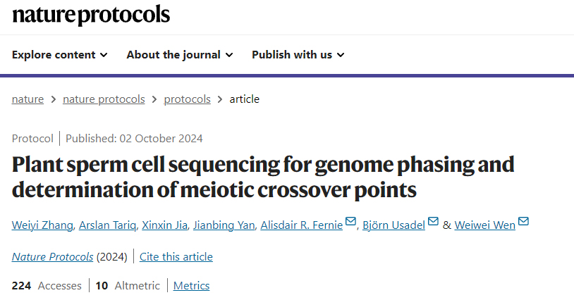 近日,公司果蔬园艺作物种质创新与利用全国重点实验室、伟德bv1946官网茶学团队闻玮玮教授课题组在Nature Protocols发表题为“Plant sperm cell sequencing for genome phasing and determination of meiotic crossover points”的研究论文。该论文详细介绍了一种依托单精子测序技术的基因组分型新方法。