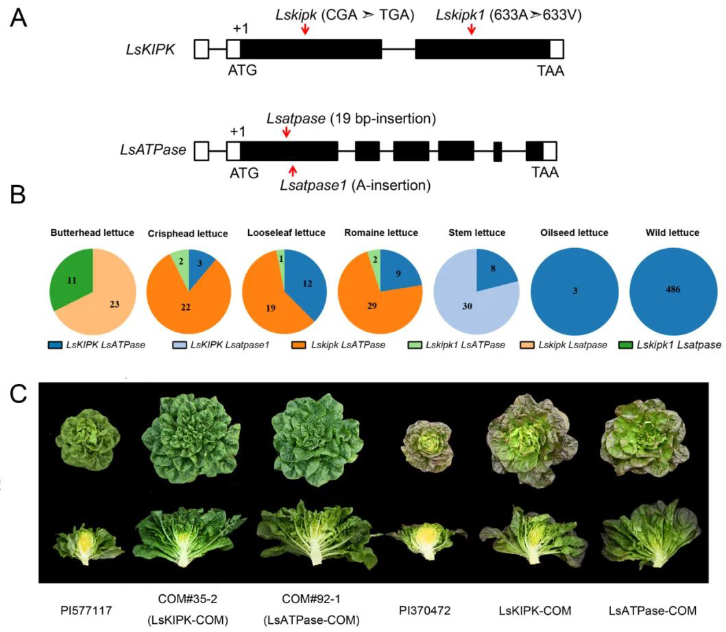 Figure 4. Loss-of-function ofLsKIPKandLsATPasecontributing to the butterhead plant architecture.