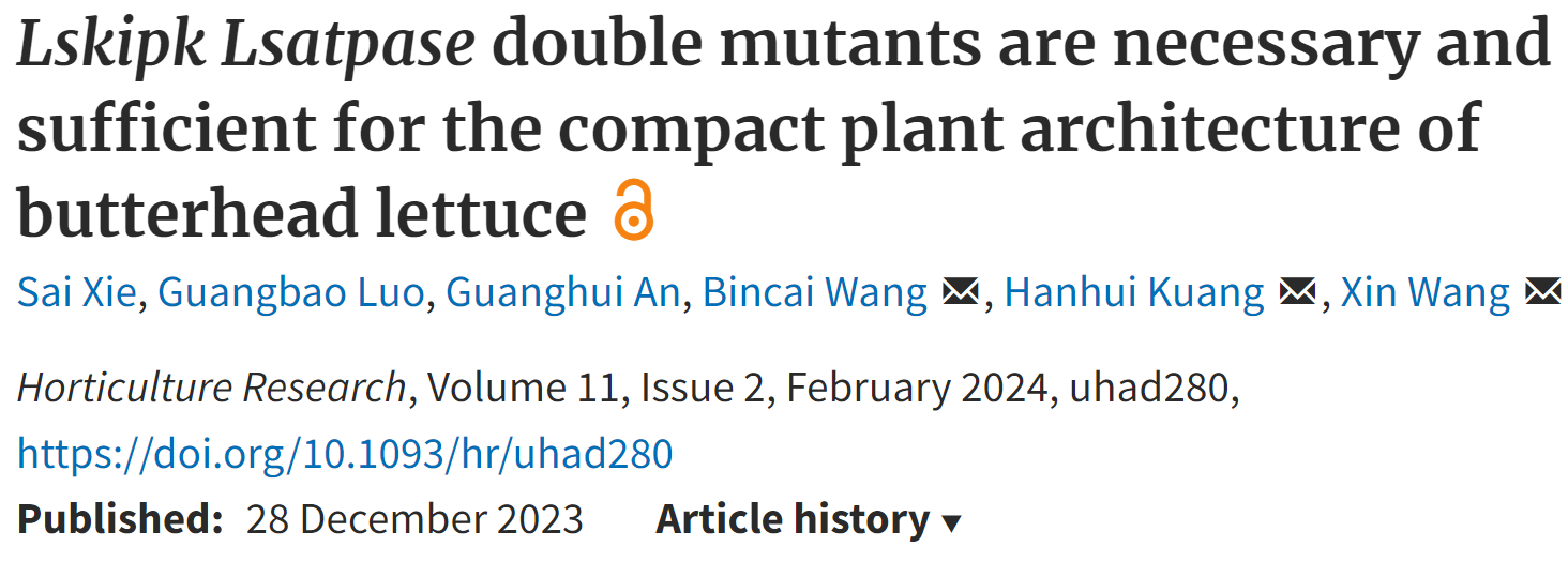 2024年1月,Horticulture Research在线发表了bv伟德国际1946果蔬园艺作物种质创新与利用全国重点实验室题为Lskipk Lsatpase double mutants are necessary and sufficient for the compact plant architecture of butterhead lettuce的研究论文。该研究通过遗传学图位克隆了两个调控奶油生菜紧凑株型的关键基因,并结合遗传转化、基因共表达分析、显微观察以及生化检测,阐述了奶油生菜紧凑株型的调控机制,为今后莴苣株型的遗传改良提供了重要的基因资源。