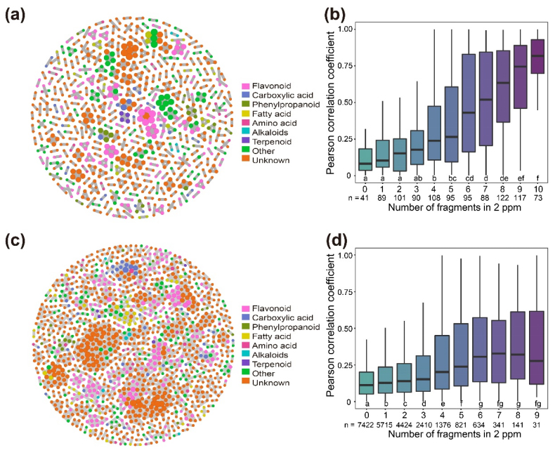 图1. 茶叶中代谢物同分异构体和修饰网络