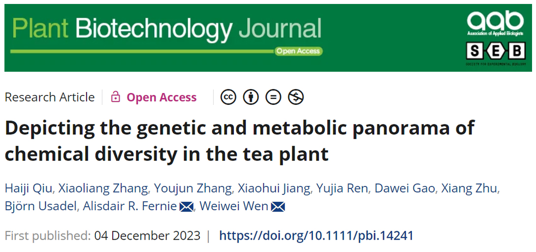 茶者,南方之嘉木也。作为中国的名片,茶的丰富滋味和优雅香气,吸引了古今中外的无数茶客。茶叶富含多样的次生代谢物,包括类黄酮、生物碱和萜类等,是其香气和滋味的重要物质基础。对茶叶化学成分及其合成通路的解析关乎茶叶品质提升,也是茶学领域的研究热点之一。12月4日,果蔬园艺作物种质创新与利用全国重点实验室、公司伟德bv1946官网闻玮玮教授课题组联合国内外多家单位在Plant Biotechnology Journal杂志上发表了题为 “Depicting the genetic and metabolic panorama of chemical diversity in the tea plant”的论文,研究结合遗传学、代谢组学和生化分析方法,深入解析了茶树的生化多样性及其遗传基础。