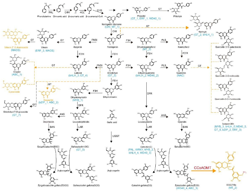 图2. 茶树中类黄酮生物合成通路