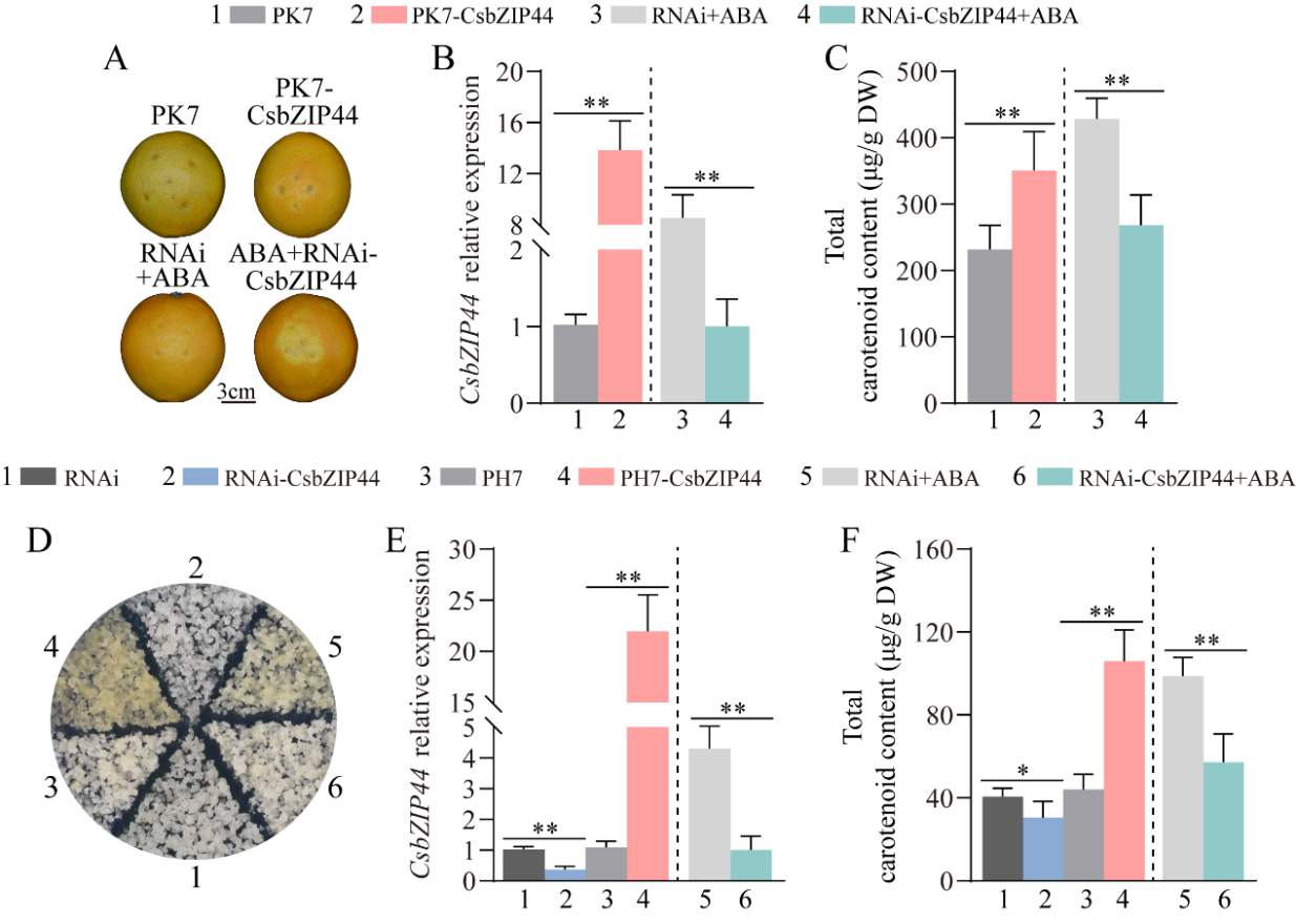 图1 CsbZIP44是ABA诱导柑橘类胡萝卜素积累的必要调控因子