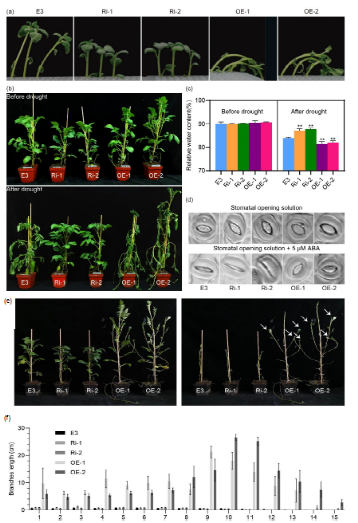图1. StHAB1抗旱和植株腋芽表型统计