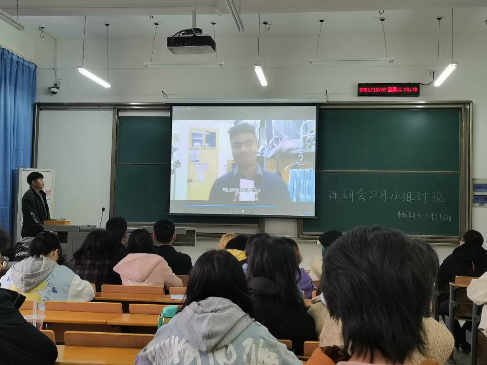 在讨论会上,理研会学员们在主持人的带领下对近期的热点话题进行了回顾,接着以小组为单位对“中国共产党第十九届中央委员会第六次全体会议”、“长征四号丙遥三十七运载火箭成功发射”等近期的热点事件进行了交流和分享,从不同的视角和方面进行分析和展示。其中一个小组选择“国家公祭日”为主题,并从这段历史唯一的影像记录者约翰·马吉的个人经历切入,重新回忆了那段历史。也有小组选择我国第一位女航天员王亚平的故事,由她的亲身经历作为线索,展示了我国航天事业一路发展而来的光辉路程。