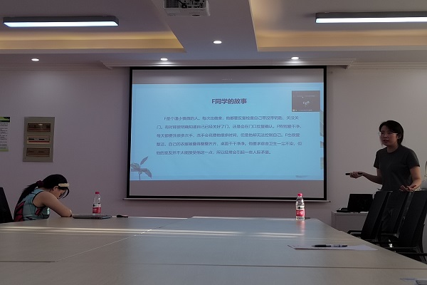 在介绍强迫症时,刘迎新老师提到:“同学们总会觉得自己有些强迫症,但真正的疾病患者与常人不同,需要区分。”而后,她以F同学的生活案例向大家介绍强迫症疾病的主要表现,并强调严重的心理疾病需要及时就医,避免因讳疾忌医导致严重后果而影响正常生活和学习。