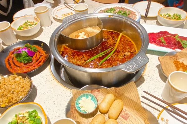 8月17日,实践团众人出发前往重庆。“围炉聚炊欢呼处,百味消融小釜中”,这是清代进士严辰吟对火锅的赞美,实践团也来到了渝大狮老火锅店,品尝这古今共赏的美味。店外看着平平无奇,店内却别有洞天:复古的装潢、上世纪的居民区、童年的小卖部……在城市化很高的重庆似乎很少体会到这种怀旧的感觉,火锅也是还原重庆老火锅风味。店员在接受采访时说到:“这里装修的市井环境真的很像我小时候的生活场景,这也是我愿意在这里工作的原因,很有家的味道。”她特意为实践团调制了正宗的油碟蘸料,只有香油、蒜泥、香菜,适量的也可以加上一些耗油,简单却独具风味。在现代化的城市,重庆渝火锅店还能独善其身,保有传统味道,实属难得。