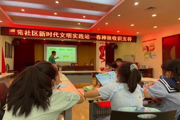 7月23日,支教团成员为同学们开展了“春种秋收识五谷”科普实践教育活动。团队成员为同学们介绍了何为五谷,即“稻、黍、稷、麦、豆”,并用日常生活中经常接触到的一些食物来进行展开说明,帮助孩子们形象生动地理解与记忆。同时,团队通过讲述粮食种植的过程,让同学们更加深刻地理解“谁知盘中餐,粒粒皆辛苦”其中涵义。此外,支教团成员还精心准备了混合的五谷,让每位同学根据课上所学亲自将五谷分门别类,通过实践加深印象,真正成为“识得五谷之人”。