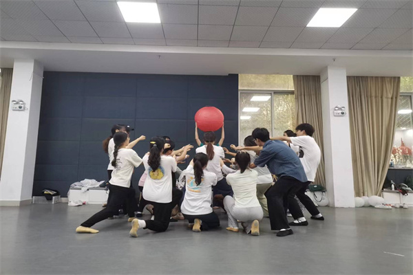 此外,实践团还选择了抗日现代舞《为了万家灯火》进行训练。该舞以重庆大爆炸为时代背景,讲述了在那个战火纷飞的时代中,为了祖国的重建与富强,一个个平凡的英雄儿女以坚韧不拔的精神将象征着希望与未来的红灯笼不断高挂,将希望之火永传。为督促成员认真训练,实践团在体能训练后开启了第一轮筛选工作,即三人一组展示学过的大舞段,从中挑选出表现优秀的队员进行后续的剧目展示。