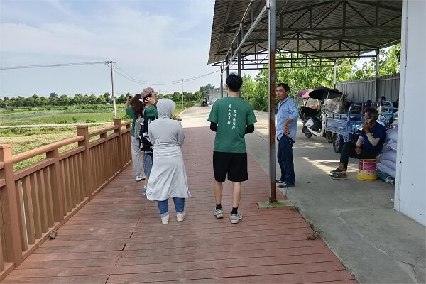 7月6日下午三点半,队员们到达bv伟德国际1946双水双绿监利基地开启调研,根据实践前期准备中收集的资料和组内讨论,将理论知识与运作模式相结合。组内成员优先参观了“稻-鸭-虾”单元投放小田块模式,稻田面积10~20亩,东西走向呈长方形。稻田宽度在80米以内,长度不超过200米,便于小龙虾投喂、起捕、鸭进出稻田、后期鸭集中在稻田一角或一边。在这种机制下,各方共生共赢,便于管理,多季均有时令性产出。该模式以创新、绿色观念为导向,形成时间空间全产业链,重塑鱼米之乡,将稻田变为“聚宝盆”。