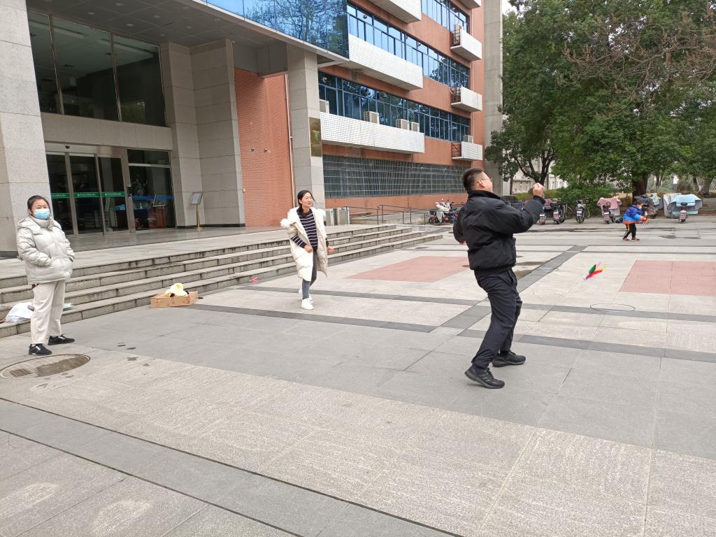 腊月二十七日上午,伴着习习微风,民俗运动趣味运动活动在园林北楼小广场进行,大家一起抖空竹,踢毽子,玩陀螺,跳绳,一起快乐运动,舒展身体,共同迎接新年的到来。