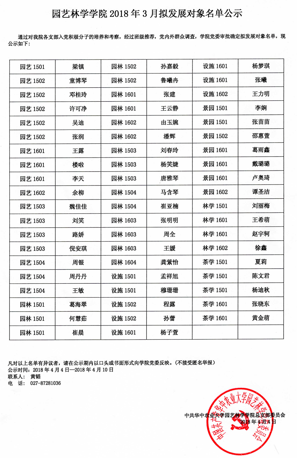 伟德bv1946官网2018年3月拟发展对象名单公示