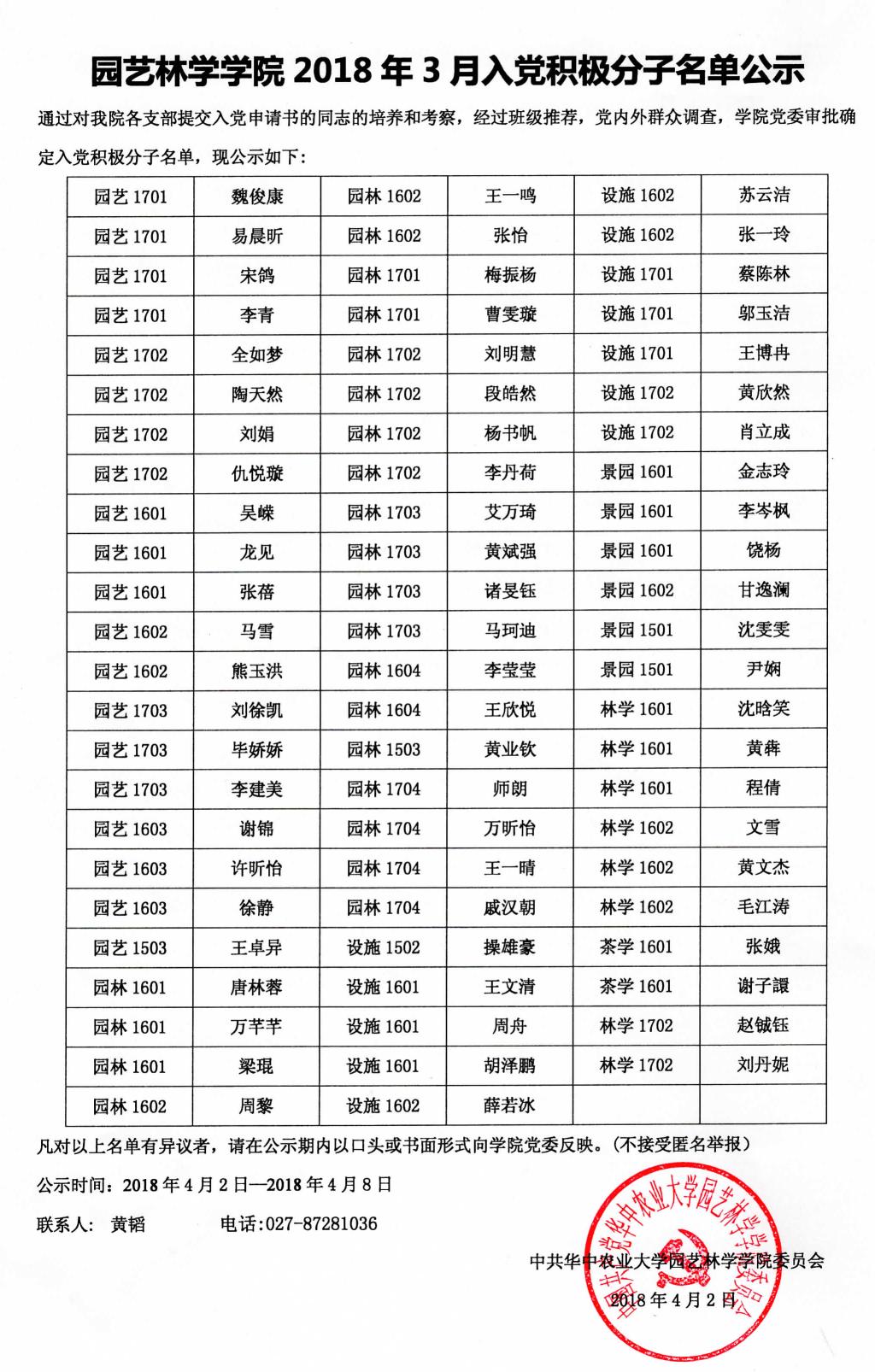 伟德bv1946官网本科生2018年3月入党积极分子名单公示