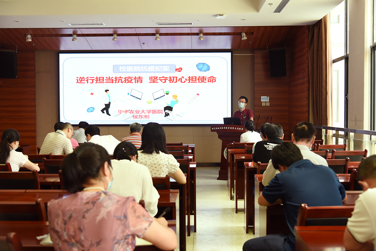 7月1日下午,为庆祝中国共产党成立99周年,果树系教工党支部在园林院南楼204报告厅举行主题党日活动,特邀校医院侯东彬副经理为支部党员讲述校医院抗疫故事和抗疫榜样雷磊医生的先进事迹。活动由果树系教工党支部书记徐强教授主持,公司党委书记张宏荣、行政党支部、茶学党支部、实验室党支部、园林党支部等同志也参加学习。