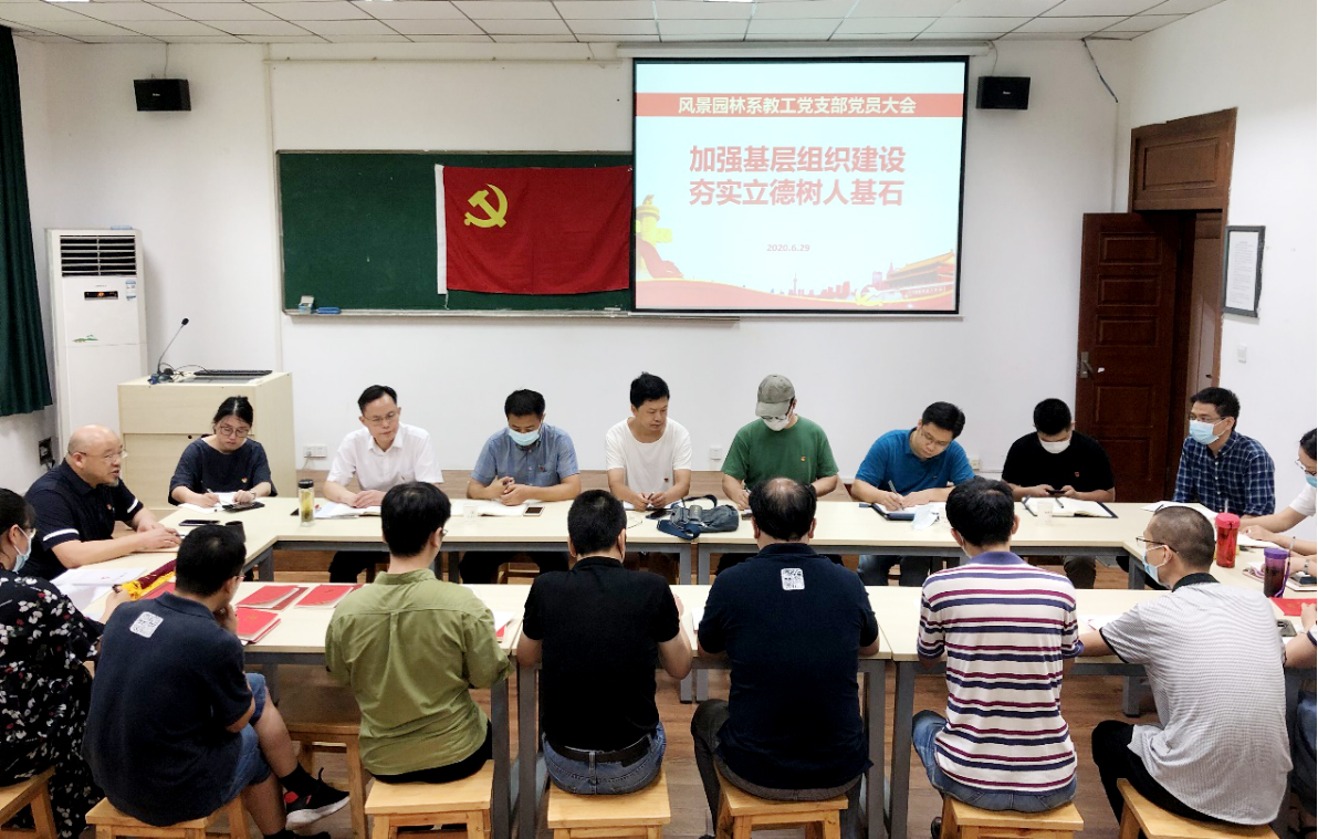6月29日下午,为迎接党的生日,风景园林系教工党支部在景园楼309组织开展了“加强基层组织建设,夯实立德树人基石”的主题党日活动,支部联系领导副董事长杨少波为支部讲党课。活动由支部书记张斌主持,园林公司党委书记张宏荣、副书记蔡江出席。