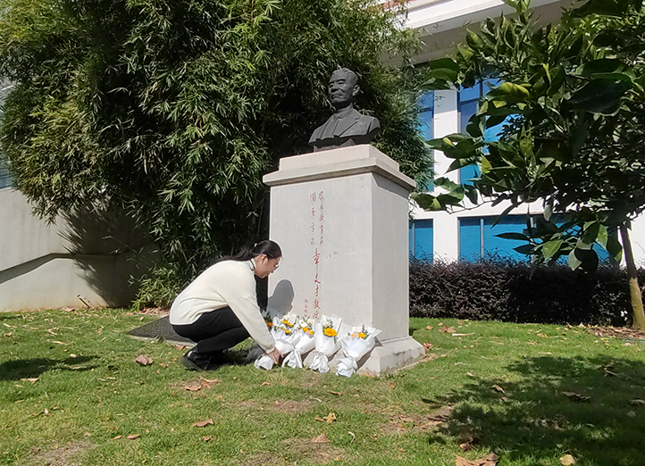随后,获奖员工现场向章文才先生铜像献花致敬,李国怀教授做总结发言。他回顾了章文才先生的一生,强调章先生的教学十分具有前瞻性,注重理论联系实际,将毕生才华奉献给了园艺事业和高教事业。李教授提出同学们应多学习,多思考,多领悟,发扬园林学子的优良传统,将对章文才先生的敬仰化作勤奋学习的精神动力,拼搏不息,奋斗不止。