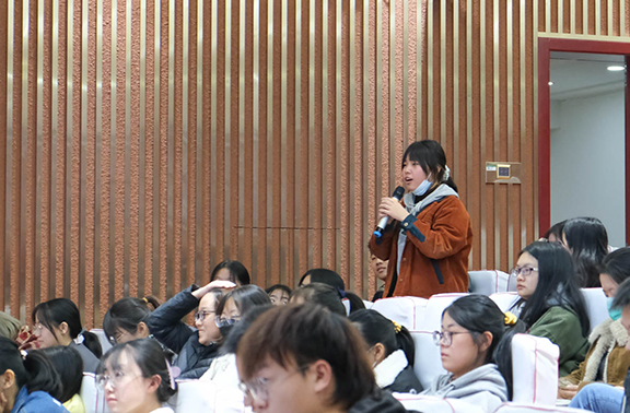 “你收到过或者向别人赠送过鲜花吗?”张帆教授以人们互送花朵的行为引入话题。收到花后,买花人希望鲜花保持时间能够更长,但花商希望买后花凋谢的速度变快。针对于此,张帆提出,园林专业具有很强的包容性,刚好能迎合这样的问题,他认为年轻人敢想、敢做,是研究里新的生命力,因此他鼓励有兴趣的同学们积极参与此类研究,解决实际问题。张佳琪向同学们介绍了二球悬铃木的研究过程。悬铃木是“世界行道树之王”,但其花粉、种毛等易引发各种过敏症。“悬铃木团队”实生选育收集了500多种种质进行改良研究,通过倍性育种获得了少果晚花的品种。在社会服务上,团队实现了研究充分落地,成功找到企业推广新品种,最终形成了一套悬铃木配套培育系统,成就了“华夏一桐”的上市推广。宁国贵以“园林植物与观赏园艺”为题,对同学们的学习作出了一定的指导。