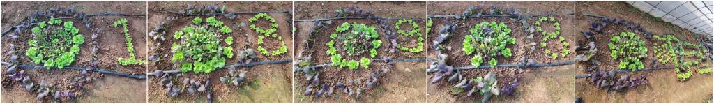 还有很多创意通过蔬菜栽培展现了出来。拼成的“CHINA”字样,蜿蜒美观的蔬菜波浪,生动俏皮的微信表情,乃至于繁体的发财的“发”字……充分展现了同学们的才思妙想,也体现了其对本次创意比赛的投入和热情。