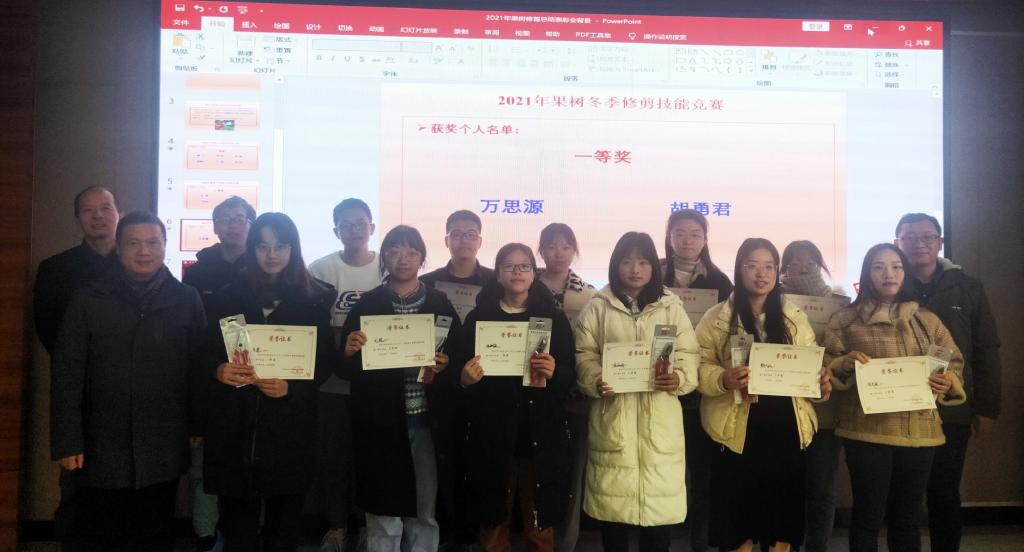 12月30日上午,2021年度果树冬季修剪实习汇报暨表彰大会顺利举行。10个小组轮番上场,用制作精美的PPT、动人声色的视频、生动形象的讲解获得了了阵阵掌声,充分体现了果树修剪实习15天的所学所思所感,同时也展现了现代老员工的良好精神风貌——有的小组利用航拍技术上演了另一个角度的花果山胜景;有的小组用一曲《孤勇者》改编阐释了什么叫做“谁说木屑满身的不算英雄”;有的小组用大家喜闻乐见的《爱情公寓》片头呈现了别样的修剪风采;有的小组则选择用之前爆火的《Coincidance》另类演绎修剪故事……