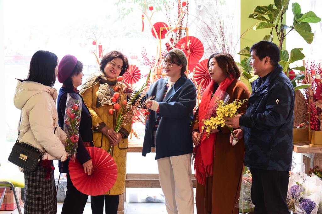 冬至篇“一诗一画一插花”活动在有梦花居线下空间进行,邀请了来自武汉幽栖花事花店钱慧文、爱尔特花艺馆陈进和有梦花居工作室柯杏林三位业界优秀的花艺师,与线上线下的爱花朋友在冬日暖阳与满室鲜花中,感受冬至的美好。武汉知音花艺协会会长柯杏林以南天竹、菊花、龙柏和红蓼花等植物,创作名为《南山游龙》的盘花小景,配以原创诗词朗诵《冬至咏蓼》;武汉市插花花艺协会理事陈进,以其夫人张丹原创赞美冬至的七绝诗出发,创作《向阳而生,美好如期》的瓶花作品;现任中国插花花艺协会理事钱慧文,从易经六十四卦中冬至定位“地雷复”的角度入手,结合《左河水节气诗》,用筒花与水盘做出复卦的作品,表达冰冻时节天地之间开始交通之意涵,与花友一起感受中华文化的魅力。参与者一起焚香点茶,挂画插花,四艺皆备。展现了冬至节气里极尽雅士风雅,韵味的生活美学。