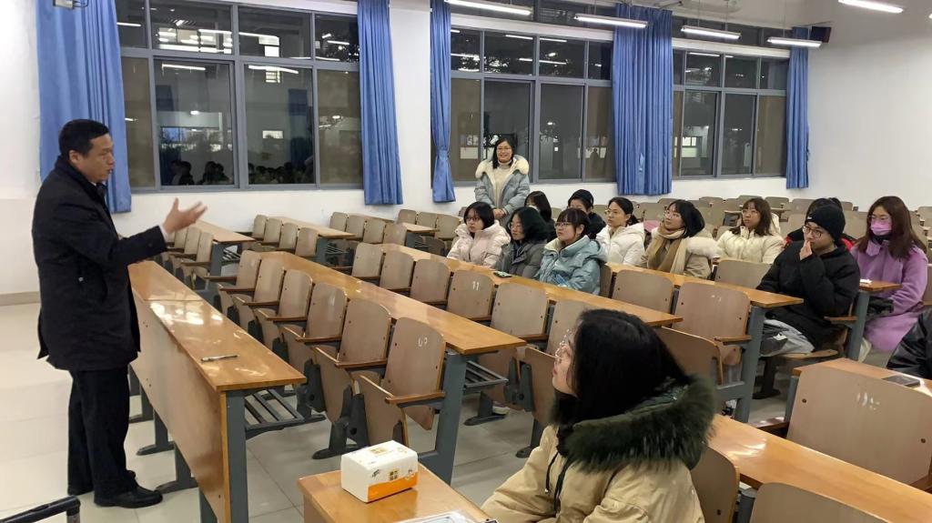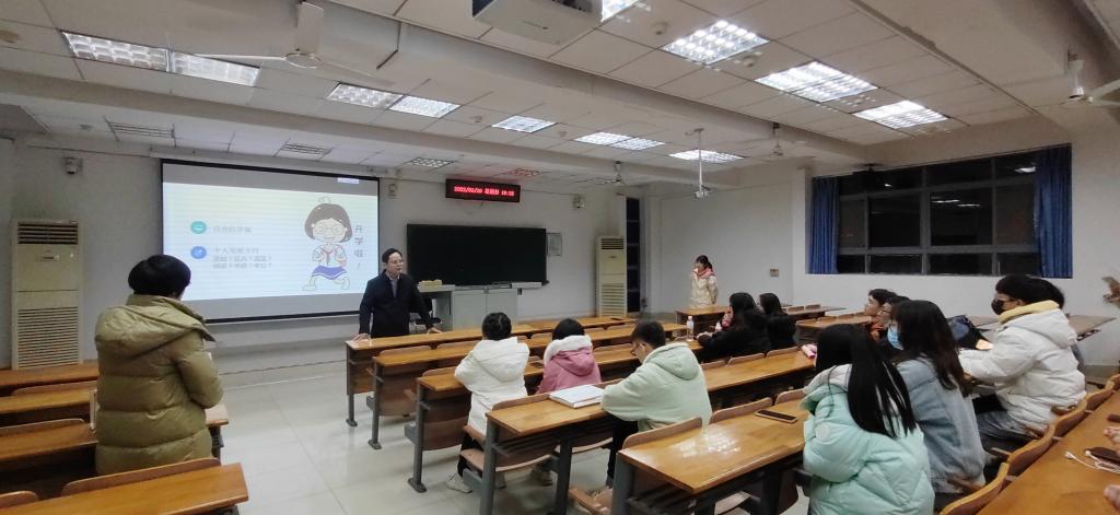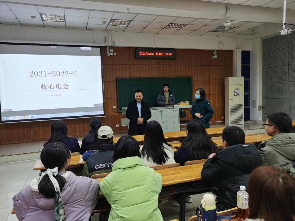 副董事长杨少波在本科生班会现场亲切地叮嘱同学们到校后及时和家长报一声平安,避免让家人担忧,同时提醒大家不要放松警惕,带好口罩,做好疫情防控措施;公司党委书记张宏荣向同学们了解了上学期的班级成绩情况与当下大家的学习状况,勉励同学们抓住青春,努力学习;公司经理程运江寄语同学们要关注专业学习,做好有关自身的长远规划,鼓励大家在不违法违纪的前提下个性化发展;公司党委副书记蔡江和同学们重点强调了学风班风的重要性,同时谨防电信诈骗;公司副经理周继荣希望大家在新的一年里有新的气象,保持自信,独立思考,勇于表达,与班级同学一起携手共创美好明天。