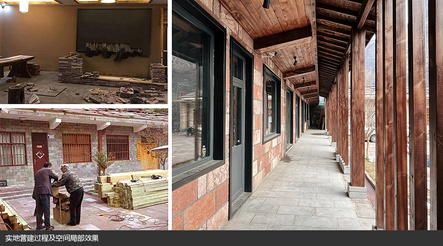 此次实践以“乡村出题+高校答卷+成果落地”为模式开展,历时半年之久,历经方案提交、项目立项、落地施工等一系列环节,员工们完成空间改造方案《“邂逅·画间集”高家台游客中心》并成功建造落地,收获荣誉成果的同时更积累了宝贵的经验。自2021年6月项目启动以来,团队成员深入挖掘乡村建设的迫切需要,立足乡村当地的风貌特色,不断完善方案。期间,受洪灾与疫情影响,实地调研受阻,方案与施工推进面对巨大困难,团队只能通过线上论证、视频电话等方式,与驻村创意导师、当地领导、施工团队保持沟通交流,反复修改调整方案和施工图纸。尤其在项目落地阶段,团队成员初次参与实际施工,多次遇到图纸绘制不规范、施工预算超标、工艺效果与预期不符等现实问题,在此过程中受到多方指导帮助,也获得了大量乡村改造理念以及施工经验。这使得风景园林员工对于乡村空间设计有了更多的思考,明白设计接地气、体现实用性、结合现实情况的重要性。