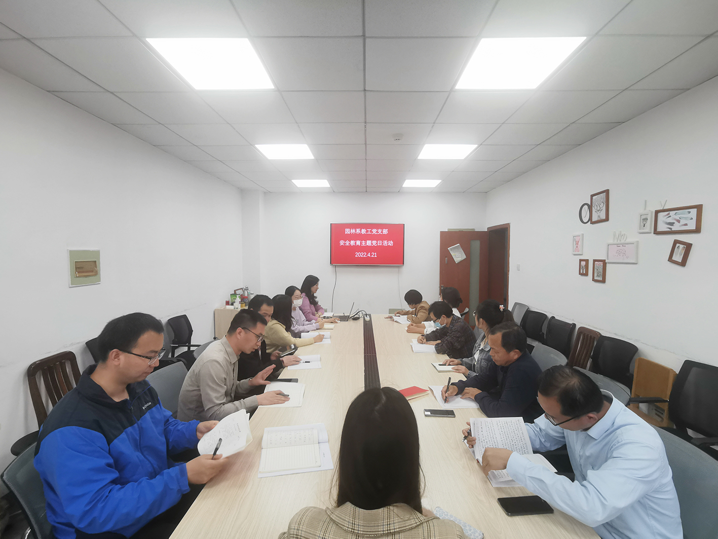 4月21日下午,园林系教工党支部在园林北楼421会议室开展“安全教育”主题党日活动。支部书记张帆主持会议,郑日如同志进行文件领学。