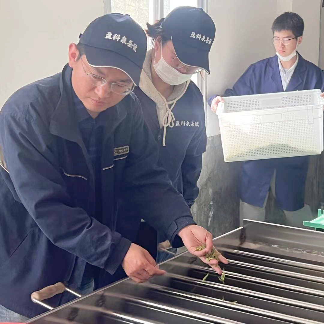 中国农技协江西宜丰茶叶科技小院由公司茶学系与江西盈科泉茶业有限公司共建,此次入驻团队由21级茶学硕士班隋梦圆、宁瑶瑶、江广贤和茶学1802班于昊男组成。两个月时间里,黄友谊教授带领团队成员重点推动江西盈科泉茶业有限公司春茶的提档升级。团队根据当地鲜叶的质量和特征,确定了黄金茶、松针绿茶、毛峰、红茶、珠兰花茶等茶产品的加工工艺,并通过感官审评及再加工改进毛茶品质。黄垦镇院前九天茶厂欧阳厂长表示,黄友谊教授的指导和团队成员们的帮助大大提高了今年春茶的质量,提升了茶厂工人的制茶水平。
