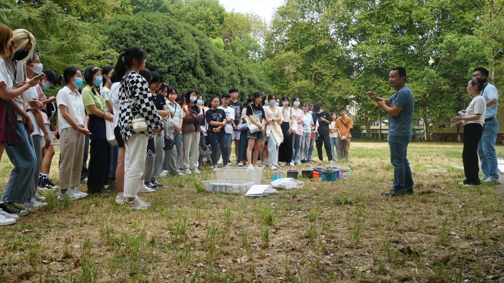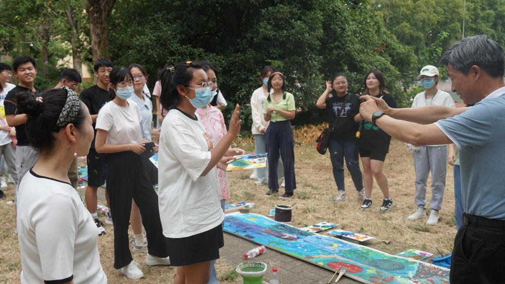 2022年9月3日下午3点,景园楼会议室中,风景园林系的专业教师们通过线上会议的方式,与新生家长展开了别样的亲切交流;与此同时,2022级景园新生正在景园楼外的空地上如火如荼地开展着新生涂鸦专业体验活动。