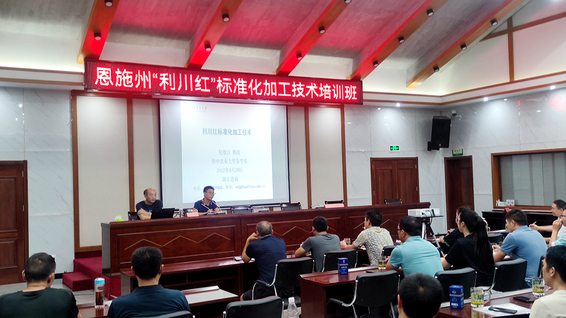 此次活动为期10天,共开展了3期培训,共计有来自恩施州八市县的90余名茶叶企业技术负责人参加,现场交流讨论气氛热烈,深受大家好评。通过培训,一是推广了团队近年来开发的新型萎凋槽、智能化发酵设备及成套技术;二是开发出针形“利川红”;三是明确了“利川红”的质量标准与加工技术规程。很多培训学员纷纷表示,期待下次倪德江教授团队“利川红”加工技术的提升培训。