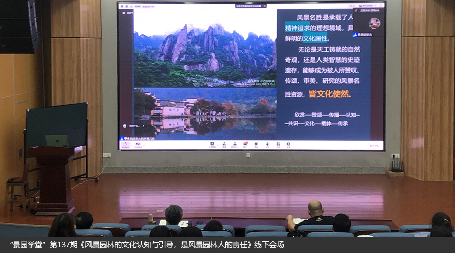 9月8日晚七点半,由风景园林系主办的第一百三十七期景园学堂邀请了江苏省风景园林学会秘书长张晓鸣,以《风景园林的文化认知和引导,是风景园林人的责任》为题,向风景园林学子讲授开学第一课。本次活动由线上线下同步开展,公司风景园林学科带头人高翅担当本次活动的主持人,热烈欢迎张晓鸣做客景园学堂,在景园楼扇形教室报告厅与主讲嘉宾现场连线,共吸引了200余名师生共同参加此次活动。