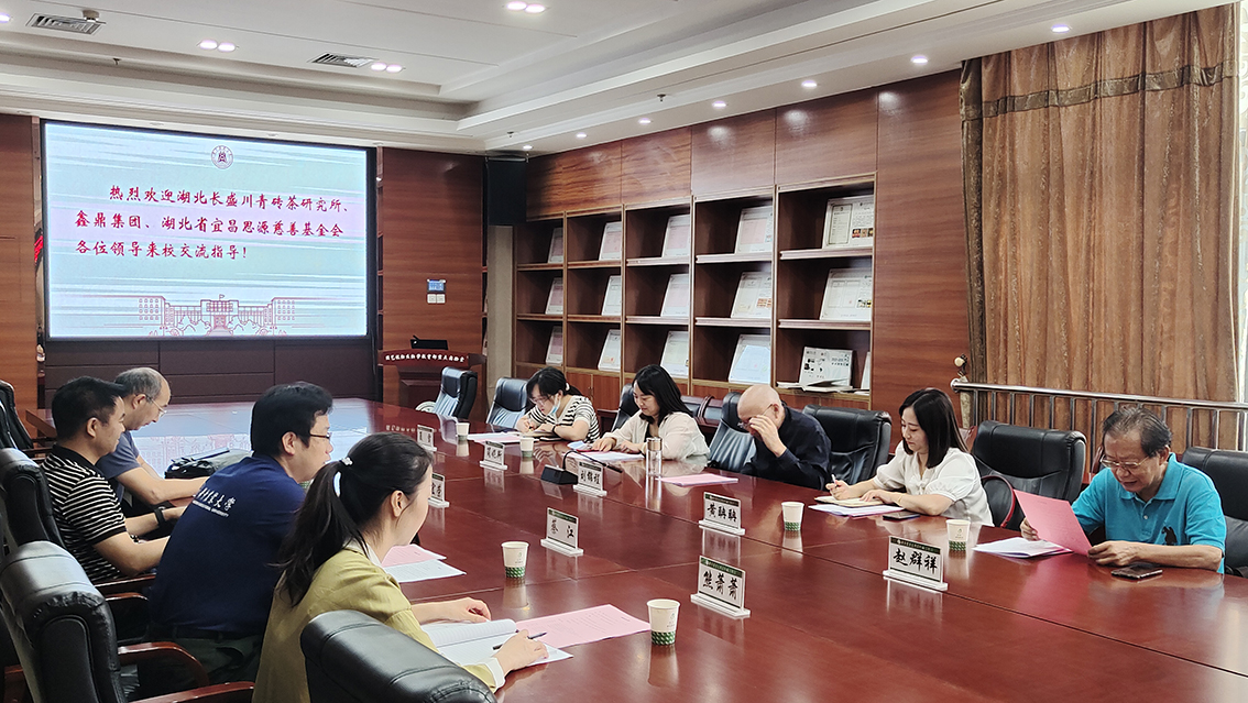 9月21日上午,“鑫鼎・长盛川青砖茶奖助学金”座谈会于园林南楼206会议室举行。湖北长盛川青砖茶研究所副所长、秘书长刘锦程、鑫鼎集团综合管理部副部长黄聃聃、湖北省宜昌思源慈善基金会顾问赵群祥等企业代表和公司党委书记张宏荣、教授倪德江出席了座谈会。会议由公司党委副书记蔡江主持。