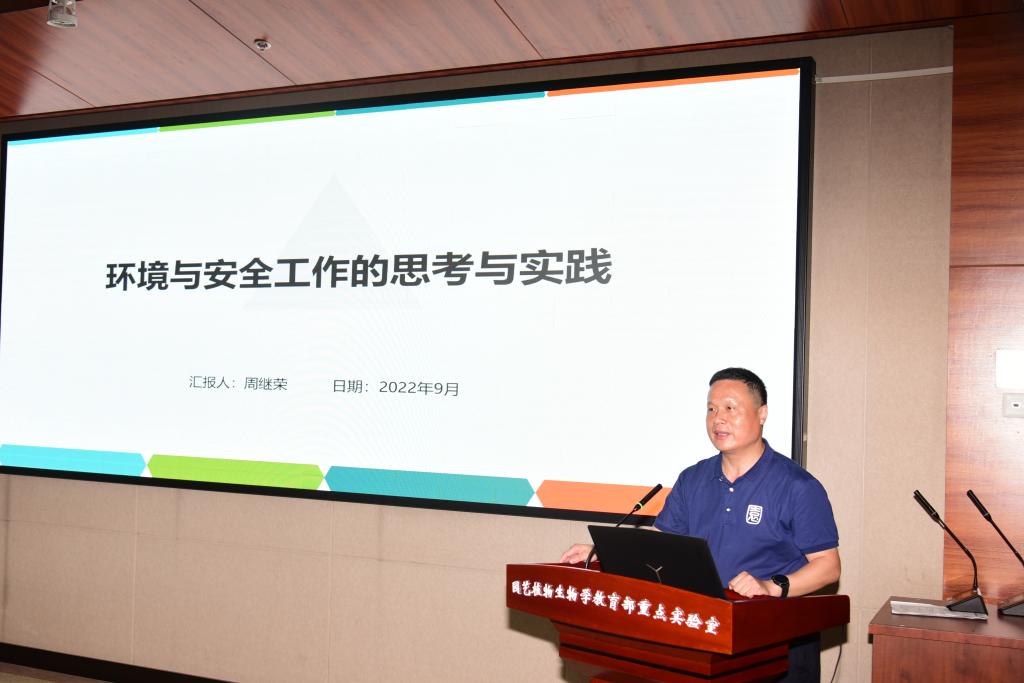 周继荣从历史唯物主义视角分析了环境与安全工作的存在基础,阐述了环境与安全感性意识在公司社会生活中的展开过程,指出环境与安全工作的“对抗性、约束性、道德性”特征。他分析了环境与安全工作的三重境界,分别为“法境界”“德境界”“道境界”。“法境界”要求依法治室,周继荣为安全员阐明公司的安全体系,他用一张张违规行为的实例照片,从多个环节强调依规行事的重要性。“德境界”要求以德化人,周继荣列举了一系列实验室中的“缺德”行为,如衣冠不整、自私自利、非指定区域就餐和不敬畏安全工作等,并进一步提出师生要修德,一是在传统文化里习德,二是在点滴小事中养德,三是在人生前台上弘德。“道境界”要求行道圆融,周继荣对安全员们提出了新的要求与期许,他希望全体安全员带领大家共同努力,使安全管理成为生活方式,将制度文化融入师生品格,让清朗氛围促进全面发展。