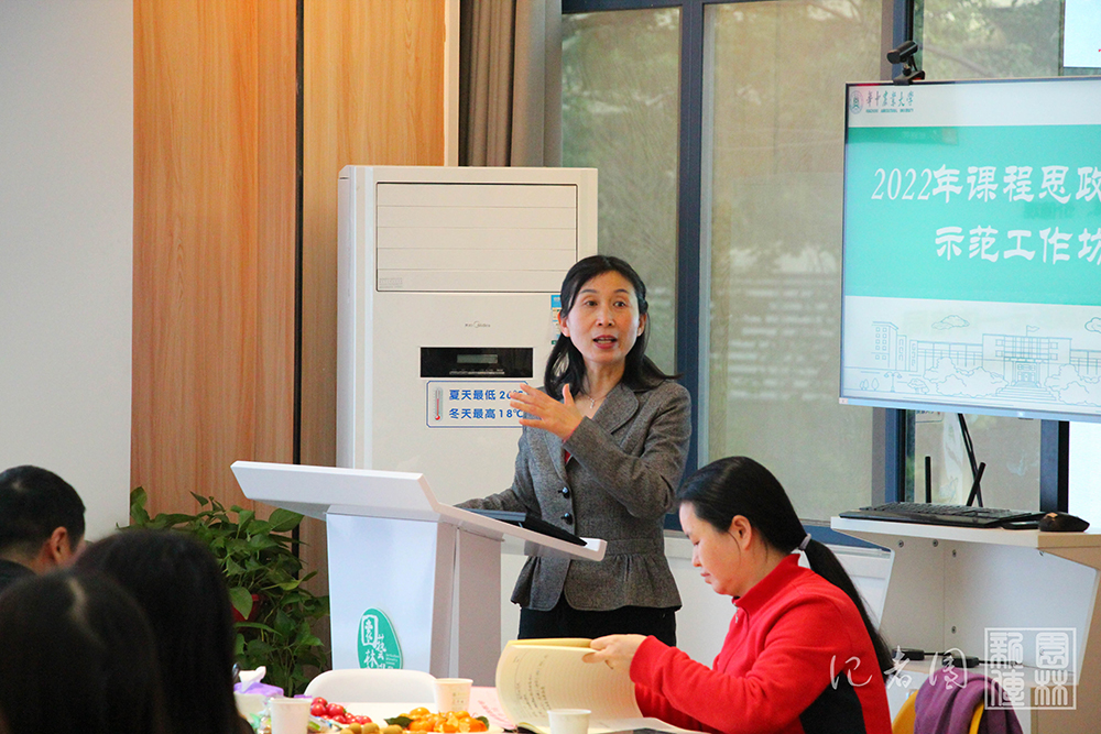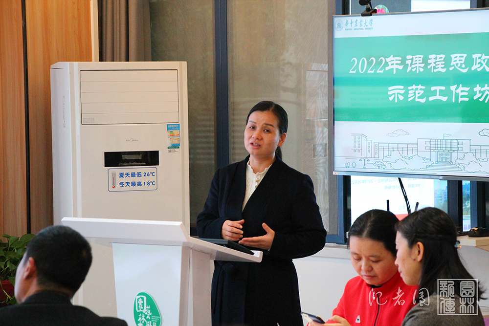 会上,李恺老师讲授课程思政教学理论。介绍了公司课程思政示范建设的发展和基本情况,提到公司课程思政教学工作室由教学内容研究室、教学方法研究室和教学评价研究室组成。她说道:“课程思政讲授中的常见问题有‘讲长了’‘讲硬了’‘讲偏了’‘讲乏了’‘讲浅了’‘讲直了’,教师应当突出‘以点带面’的讲授方式”。师者不止要负责知识的传授,更要从能力培养、价值塑造处立德育人。为此,教师需挖掘课程思政元素并有机融入课堂教学,结合专业特点推进课程思政建设。李恺认为,园林院的专业可以与“两山”理论、工匠精神、生态文明等思政元素相结合,培养出知农爱农的新型人才。
