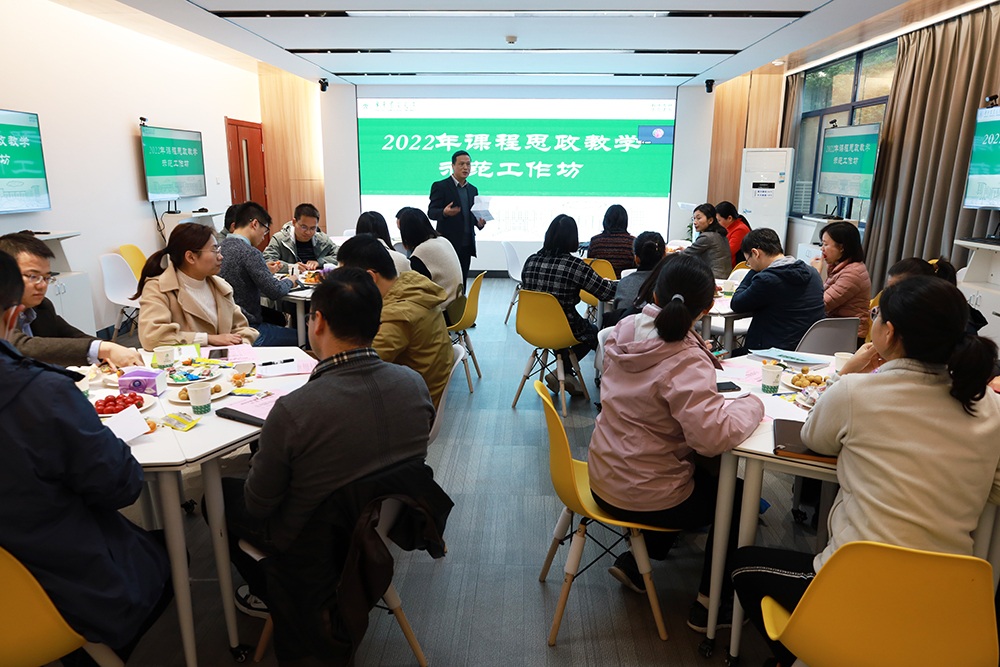 11月24日下午,公司在园林北楼221虚拟仿真室举办课程思政教学示范工作坊,邀请公司课程思政教学工作指导团队李恺教授、曹敏惠副教授和汤蓉副教授现场指导,30多位教师代表和教务办负责老师参会,副经理周继荣出席会议,李恺主持会议。
