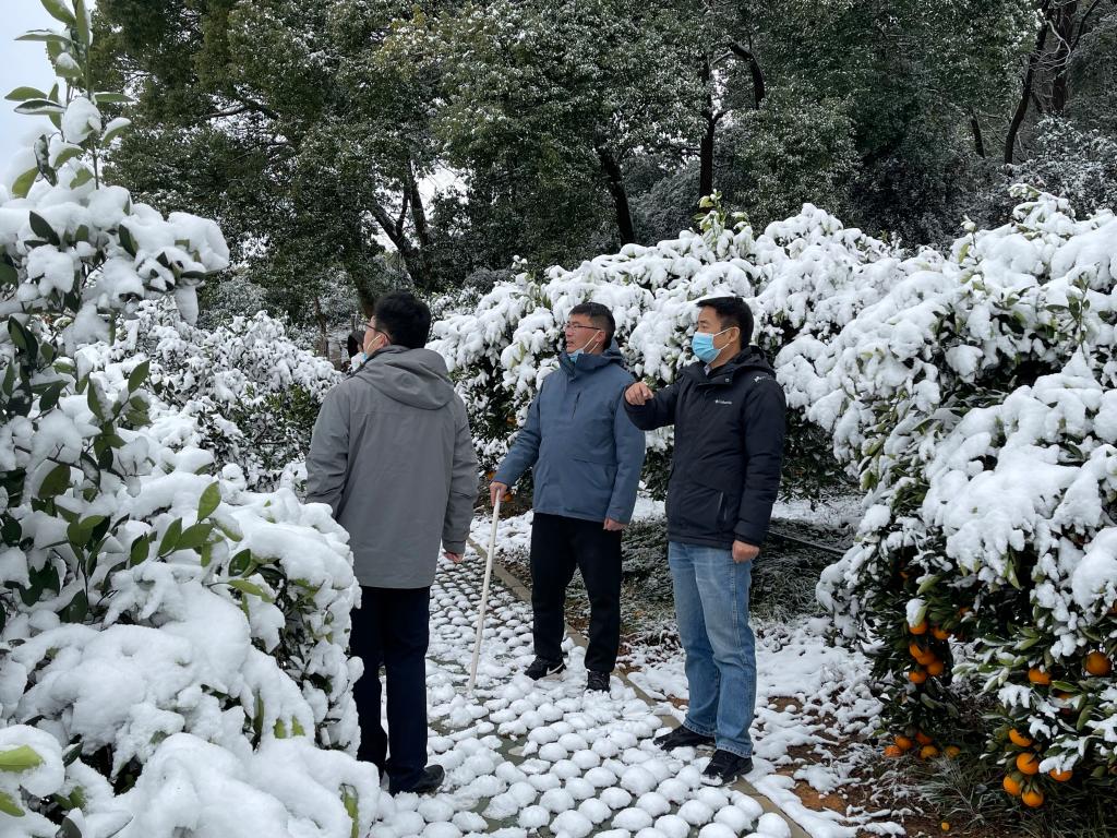 在国家柑橘育种中心,张宏荣详细了解了此次恶劣天气对园区造成的影响、改造工程进展等情况,强调一定要加强安全监控,落实值班值守工作责任,重点就室内用水用电取暖、室外管道防冻、温室大棚积雪等情况做好排查及应急处置工作,切实做好防冻、防滑、防风、防高空坠落、科研材料管护等工作。随后,张宏荣一行还走访了国家蔬菜改良中心华中分中心、茶学基地、南湖新基地、黄土坡蔬菜基地等,仔细查看了雪后受灾情况和安全措施落实情况。