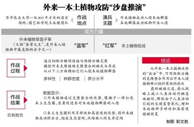 长江日报讯(记者周劼 通讯员蒋朝常)为什么有的外来植物能长驱直入,泛滥成灾,成为本土生态的巨大危害?因为它有“计谋”。为什么有的本土群落成功抵抗外来物种的入侵,保护了自己的栖息地?因为它有“策略”。日前,bv伟德国际1946园艺林公司王永健团队发表最新成果,通过对外来—本土植物攻防之间的“沙盘推演”,他们找出了外来植物成功入侵本地群落和本地群落成功抵御外来入侵的“兵法之要”。
