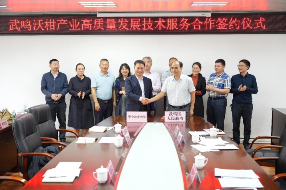 潘新世与程运江代表双方签订了技术服务合作协议,根据协议内容,公司柑橘团队与武鸣区人民政府将在武鸣沃柑黄龙病综合防控、市场竞争力提升的沃柑新品种培育、采后商品化处理能力提升和品牌建造、高水平的产学研示范基地的建设、专业人才队伍建设等开展全面合作,进一步夯实武鸣沃柑产业根基,防范和化解产业风险,提升产业科技支撑和沃柑产品的市场竞争力,确保沃柑产业效益和农民收入的稳步提升。