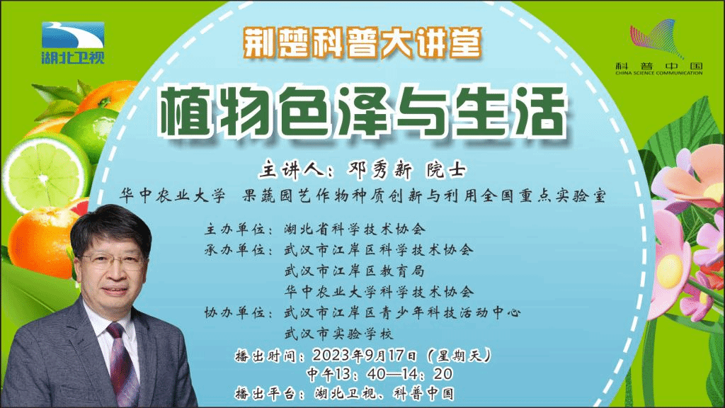 世界是多彩的,五彩斑斓的植物不仅让我们赏心悦目,更与我们的健康生活息息相关。日常生活中我们总能看到各种颜色的蔬菜和水果,紫衣甘蓝、红艳艳的辣椒、粉红色的苹果、橙色的柑橘、黄色的杧果和拼色果盘……。它们为什么会有如此艳丽的色彩?这些色彩与人类的营养健康有什么关系?植物色泽的形成遵循哪些规律,又蕴含哪些哲学道理?欢迎来收看“荆楚科普大讲堂——植物色泽与生活”。